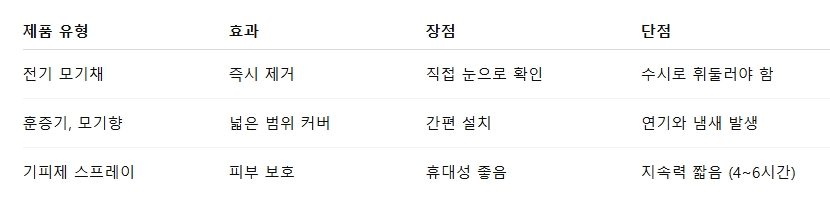 6. 전기 모기 퇴치기 vs 스프레이 vs 향: 뭐가 효과적일까?