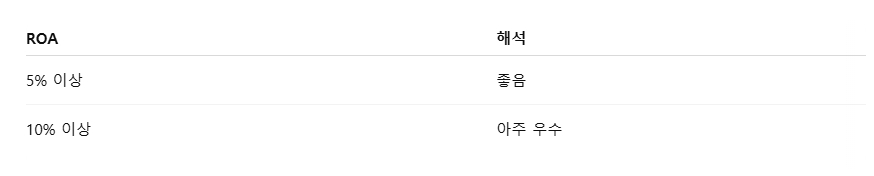 쉽게 말하면: "회사가 가진 모든 자산을 얼마나 잘 활용해서 이익을 냈냐?"