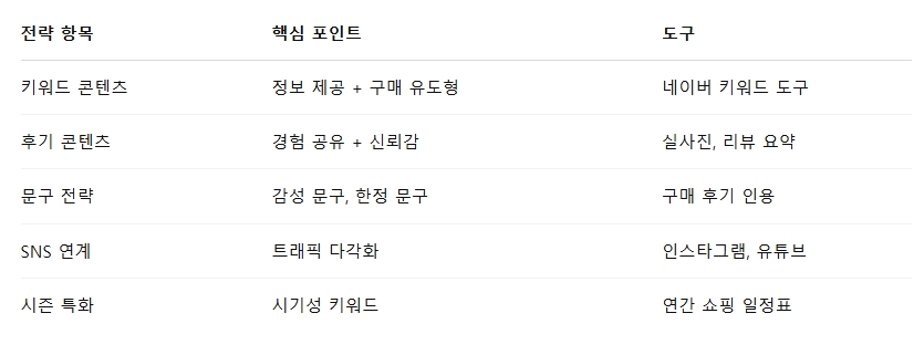핵심 전략: 시즌별 키워드, 상품 비교 글 집중