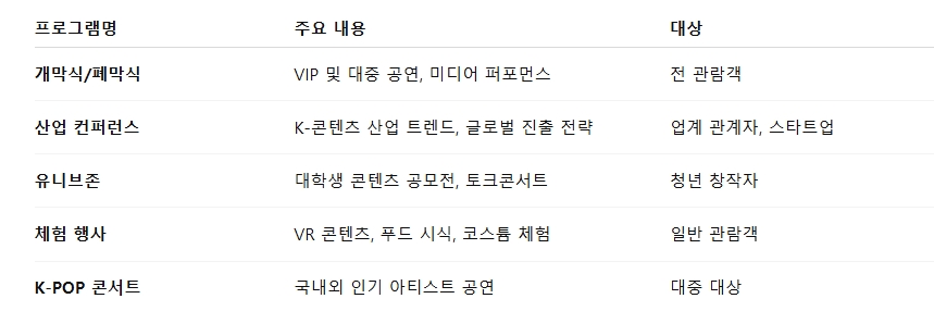 이 박람회는 체험형 문화 플랫폼입니다. K-콘텐츠의 미래 산업을 한눈에 보고, 실제로 참여할 수 있다는 점에서 교육, 문화, 창업, 관광 모두를 포괄합니다. 문화 콘텐츠에 관심이 있는 누구라도 1일 방문만으로도 깊은 인사이트와 즐거움을 얻을 수 있습니다. 천안이라는 지리적 이점도 큰 장점이며, 서울·수도권에서의 접근성이 좋으니 꼭 방문해 보세요.